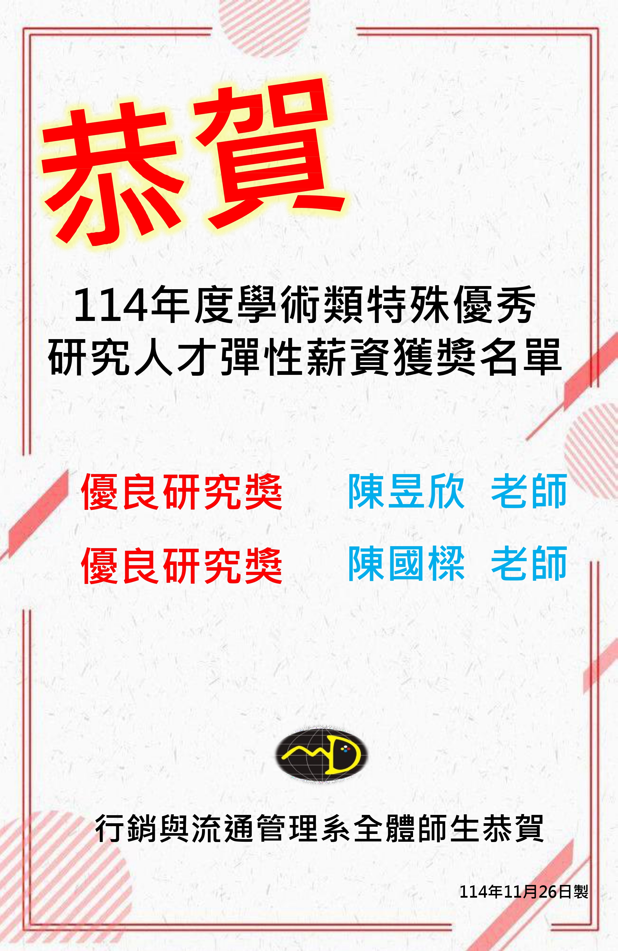 114學年度第1學期行銷系各項獎助學金申請資訊